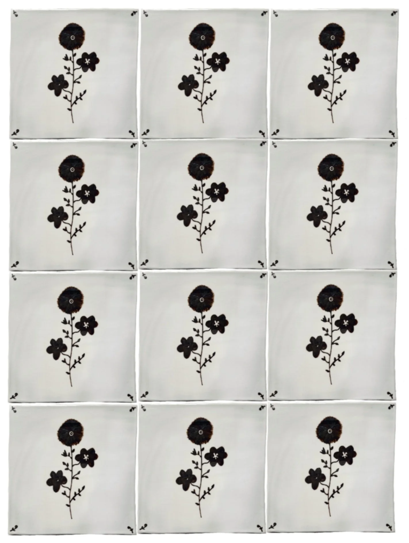 Tiles PRE ORDER | Wild Rose Trim Tile | French Blue and White $50.00 PRE ORDER | Alpine Trim Tile | French Blue and White $45.00 PRE ORDER | Checkered Alpine Trim Tile | Chocolate Brown and White $55.00 PRE ORDER | Alpine Trim Tile | Chocolate Brown and White $45.00 PRE ORDER | Alpine Trim Tile | Chocolate Brown, White and Cream $50.00 PRE ORDER | Alpage Trim Tile | French Blue and White $50.00 PRE ORDER | Meadow Trim Tile | Chocolate Brown and White $45.00 PRE ORDER | Meadow Tile 1 | Chocolate Brown and White $65.00 PRE ORDER | Meadow Tile 2 | Chocolate Brown and White $65.00 PRE ORDER | Meadow Tile 3 | Chocolate Brown and White $65.00 PRE ORDER | Meadow Tile 4 | Chocolate Brown and White $65.00 PRE ORDER | Meadow Tile 5 | Chocolate Brown and White $65.00 PRE ORDER | Alpage Tile | Chocolate Brown and White $80.00 PRE ORDER | Alpage Tile | Painter’s Blue and White $80.00 PRE ORDER | Hen Tile | Painter’s Blue and White $80.00 PRE ORDER | Checkered Alpage Tile | Painter’s Blue and White $90.00 PRE ORDER | Checkered Alpage Tile | Chocolate Brown and White $90.00